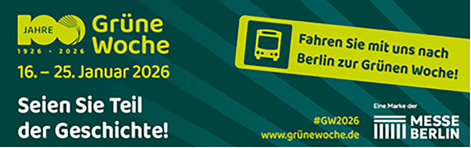 KDFB Diözesanverband Regensburg Studienreise Grüne Woche Berlin Sonntag, 18. Januar – Dienstag, 20. Januar 2026 Sonntag, 18. Januar – Dienstag, 20. Januar 2026 Details zu dieser Reise anzeigen: KDFB Diözesanverband Regensburg Studienreise Grüne Woche Berlin Sonntag, 18. Januar – Dienstag,...